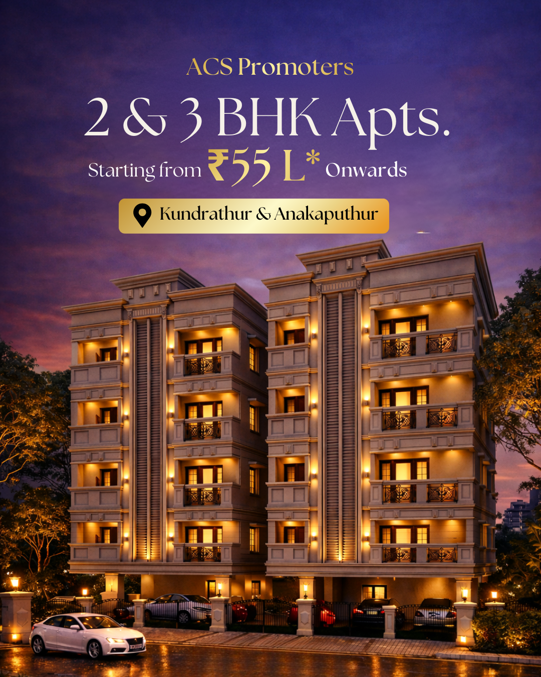 Yes — every flat in ACS Promoters is designed with 100% Vaastu Shastra principles, including entry orientation, main door direction, room placement, and energy flow. Ideal for families who prioritize auspicious living.